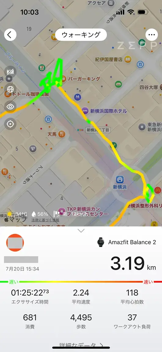 ですが、それ以外は歩いていた歩道をしっかりトレースしきっている点なんかは精度が物凄く高いと感じさせてくれます。